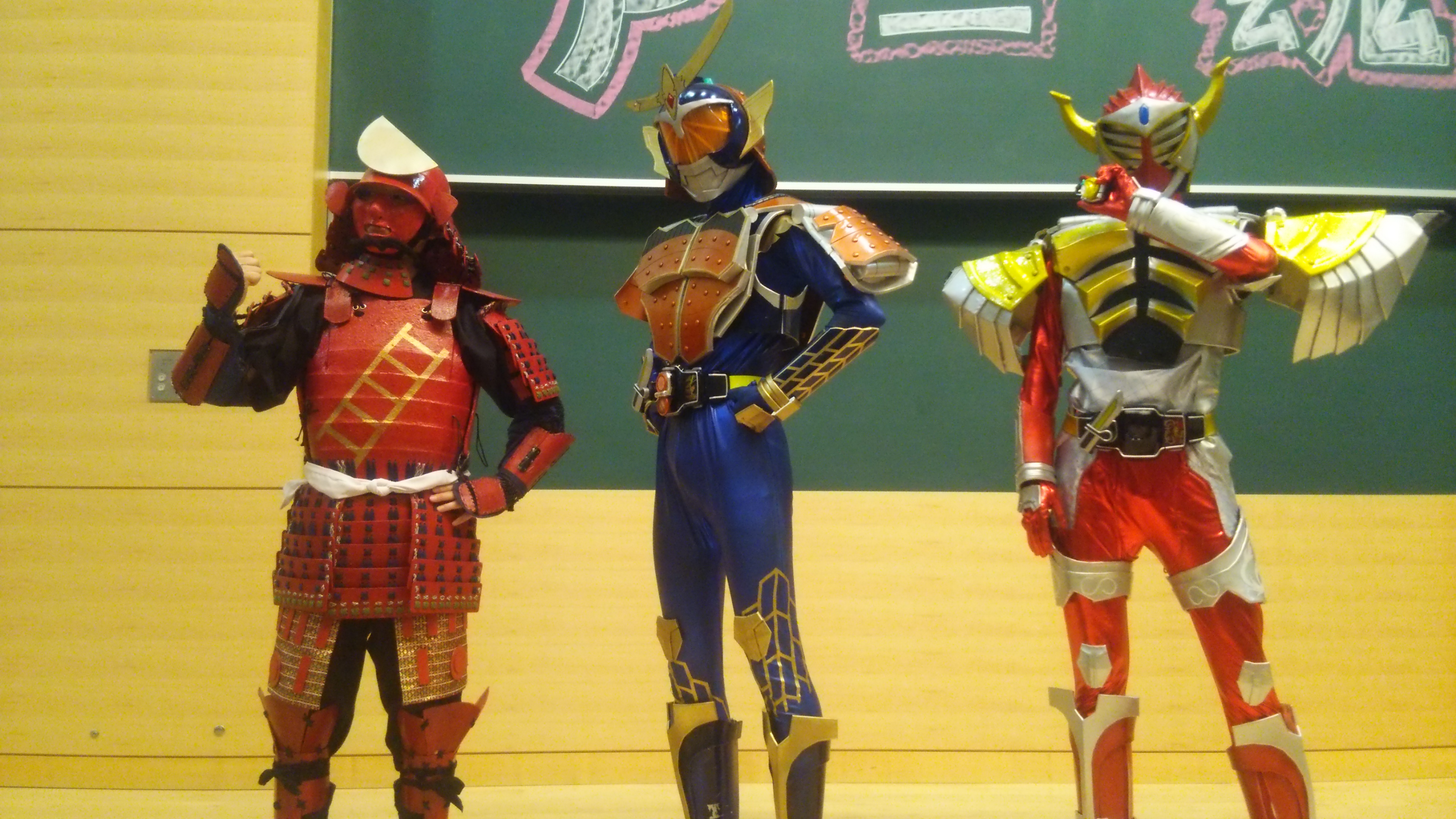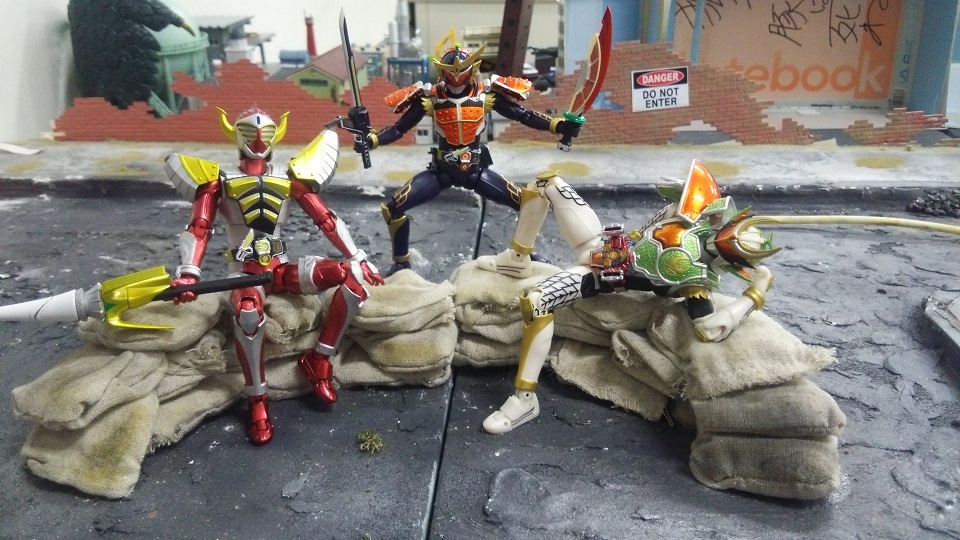 右からバロン、鎧武、武者。