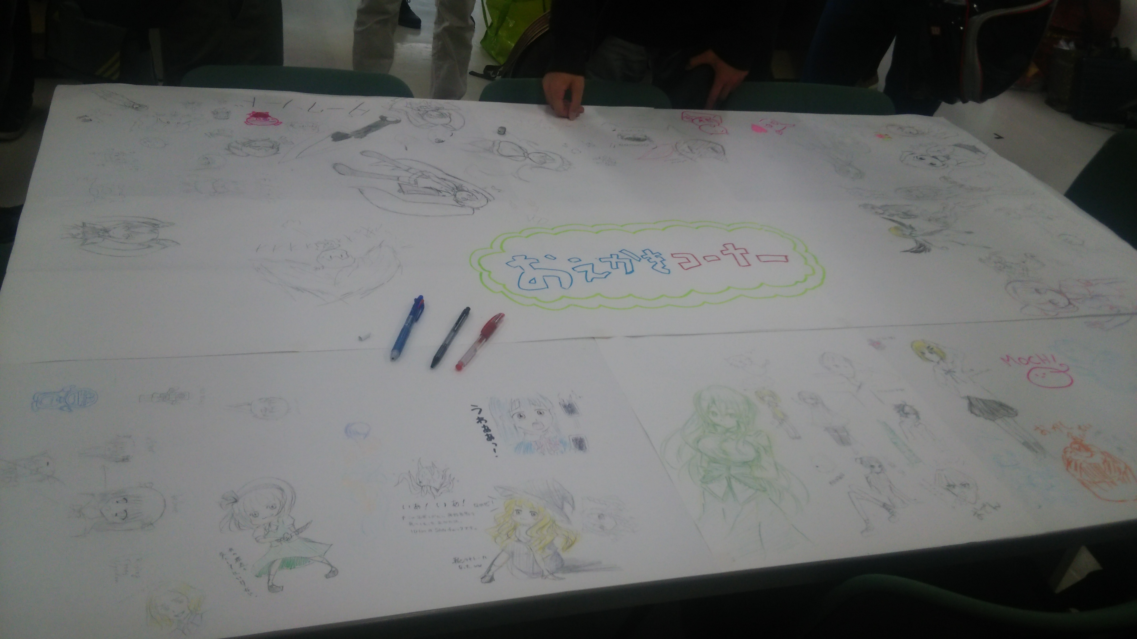 お絵描きコーナーも大盛況でした。ほとんど部員が占拠していましたが